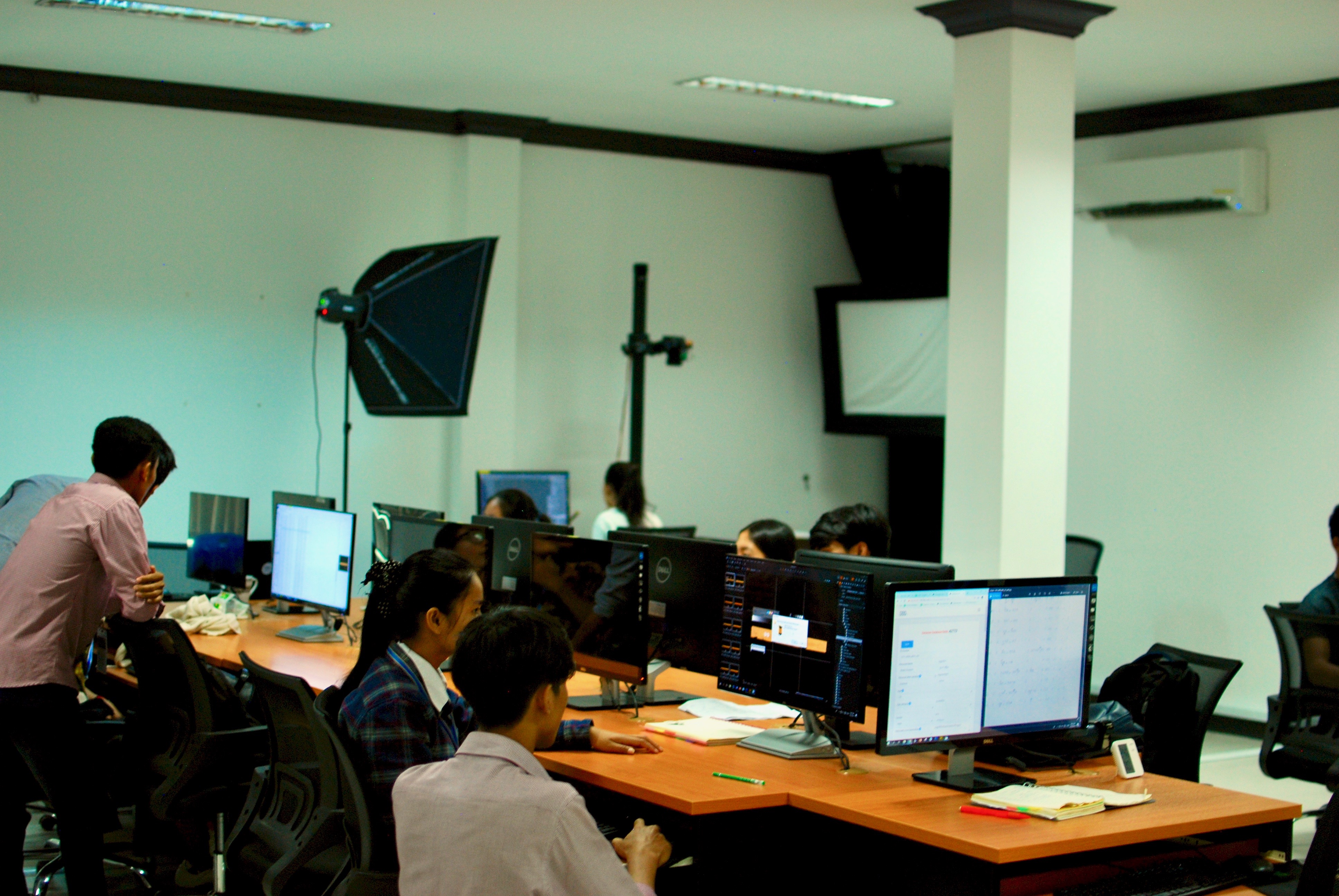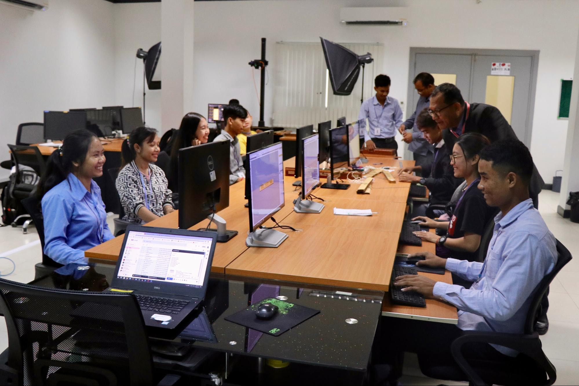 The digitization team at DDD during a visit by H.E. Siyonn Sophearith, Director-General of Techniques for Cultural Affairs, Ministry of Culture and Fine Arts (upper right).